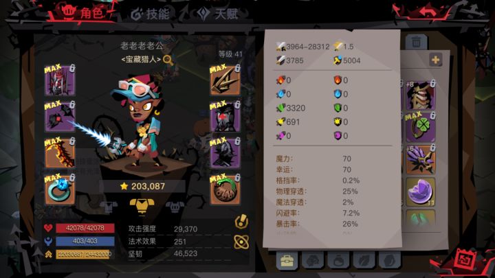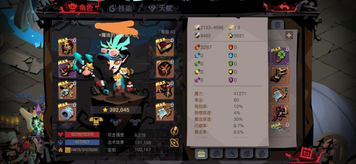 属性超出了,打得挺轻松的,没钻石买药,一路罐子没出过蓝药,全靠吞噬回蓝,打巨魔就喝了一瓶红(其实并不需要,是我有点虚),一路守门员全是重击+各种词条,最后说一句,吞噬nb!
