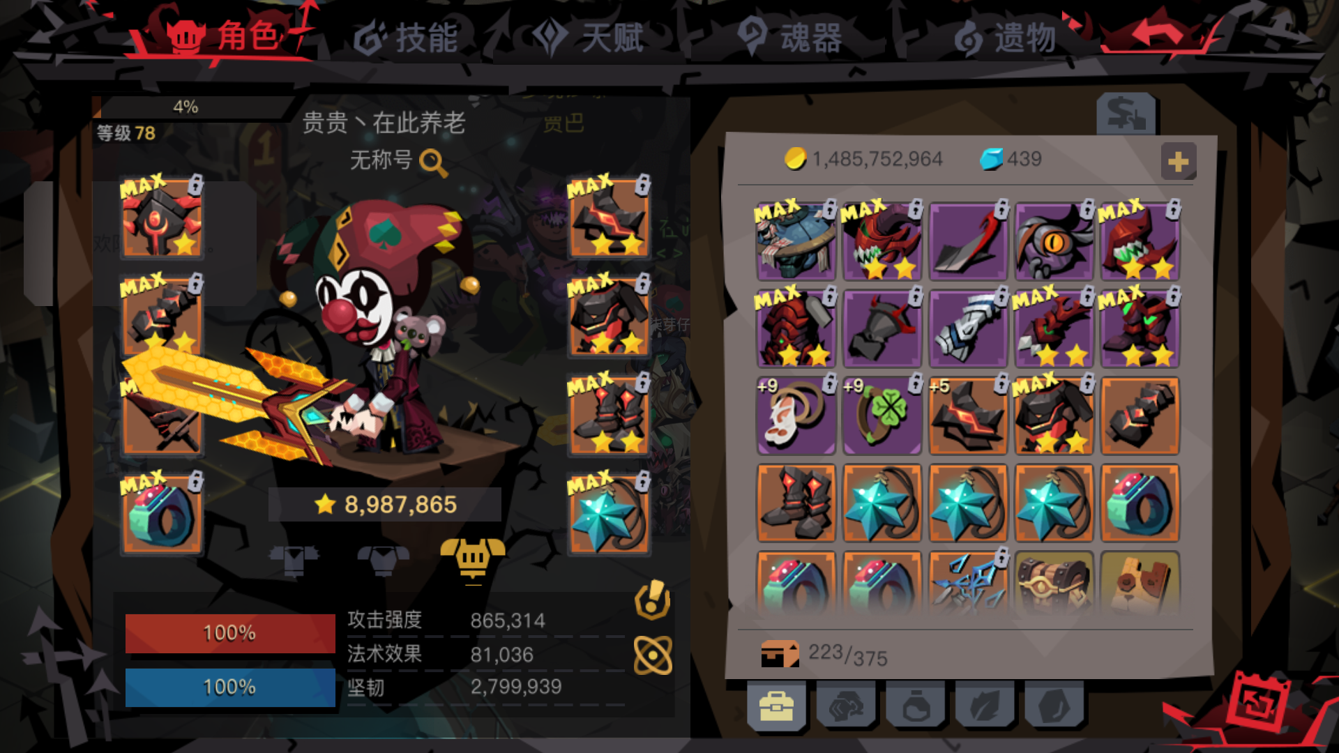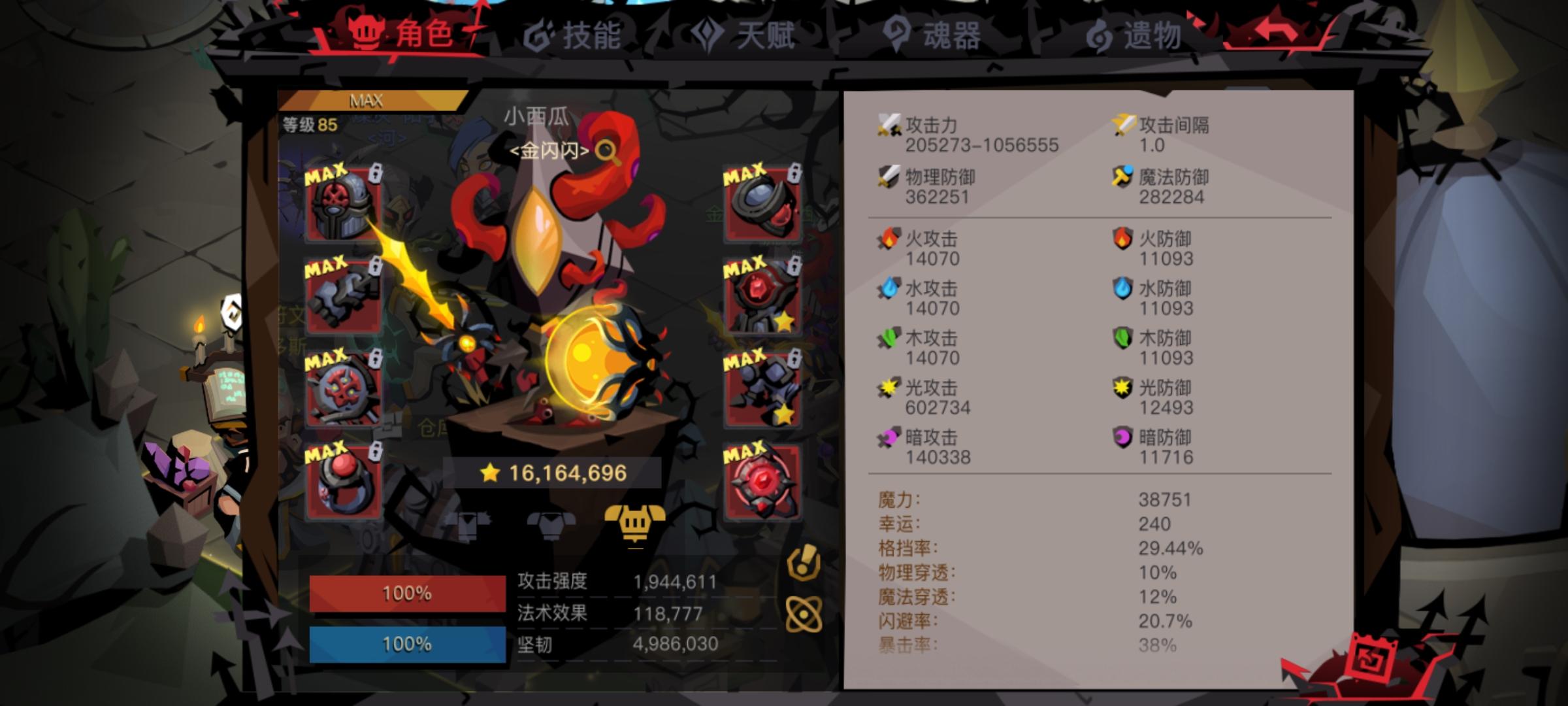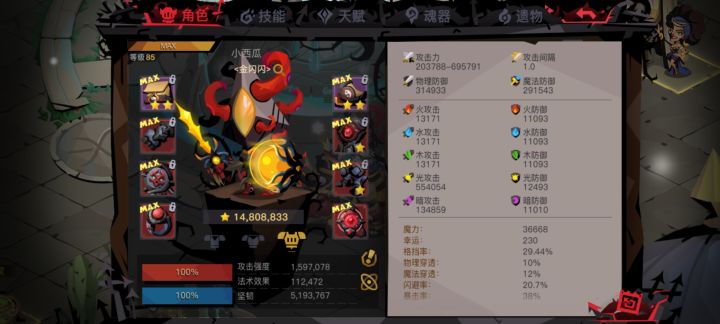 玩了一个礼拜,这属性还行吧,0氪,发现现在每天就是收一收菜打不过疯国王