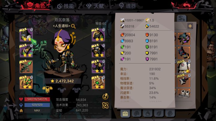 没想到这么多人还不太清楚这个,那我就说一下我一般是怎么做的。这个游戏的面板数值是由所有基础数值的和经过所有百分比的和加成之后得到的。比如我装备放在背包里,它们能给1w魔力,天赋6%,公会10%,穿上之后1x1.16w魔力。想要快速知道绿字加多少,得先知道自己总共有多少加成,你可以自己一个一个加起来,不过我通常用增减属性来看,最简单的单纯增减数值的方法就是拆符文。这是我现在的面板,魔力如下。