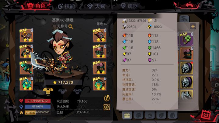 说下心得 打了5天 今天凌晨2点多才过😂困的不行 就睡了 没来的急截图都有攻略贴 也没啥说的 就说17和20吧,17有锋锐和百速开魂器能干过、平常也可以交魂器不过到20层之间怪少话的魂器可能打不回来,l7层怪切记不要多打,20层能卡住血线放战神最好,感觉卡不住了战神冷却没好提前安定 被晕完及时解流血,血瓶及时用,我这面板是交了魂器。boss我用战魂过的 因为只有900蓝😂,毕竟有普攻吸血嘛、卡
