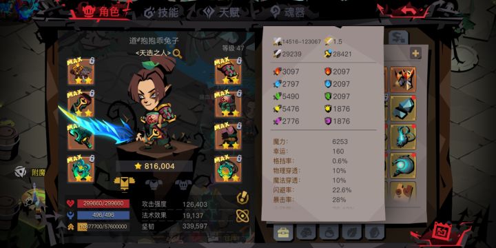 47大剑29.9血极限过精三~回蓝套很重要,图三感觉蓝非常重要,打的时候会花砖石买蓝,过图属性如下,感谢大神朝生暮死的指导~大家可以参考下