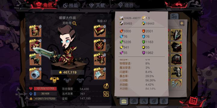 打到国王差点复活,60套确实耐揍一些😂感觉大剑就是置之死地而后生,丝血不要慌,就赌闪避和吸血暴击,状态瞬间拉满哈哈。本来买蓝了忘了拉出来😱,操作有些笨拙,各位客官当个乐看吧~