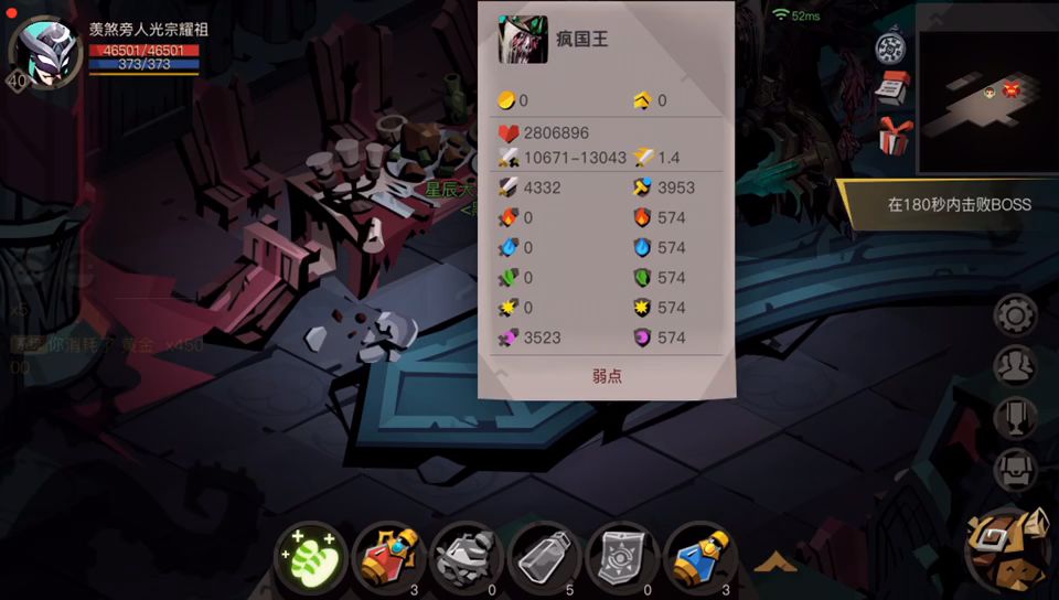 虽然版本进度都快开图四了,然而我等佛系玩家刚过了图一精英巨魔,还在图二刷书,看论坛好多玩家配置跟我差不多还没过去精英巨魔,特此结合之前大佬的攻略跟自己这几天摩擦巨魔得来的经验分享给各位,希望有用,废话不多说,先上我的渣渣属性。如上,基本上比我属性好的如果运气不是很差,应该可以妥妥的过了。首先,进图金币三个蓝必须买,我目前的伤害不买蓝还是很大风险蓝不够过不去boss。清怪我习惯有蓝的情况下先清