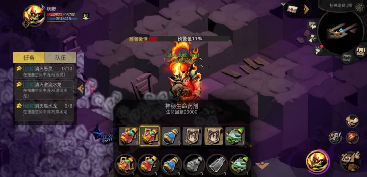 这次体验服更新,最重要的是双技能页,在洞窟里可以随时更换,但是似乎存在限制,我换了3次就显示“更换太过频繁”,不能换了,对盾哥来说已经是很好的改动。第二重要的是一个很奇怪的功能,“贪婪抉择”,每次下一层可以随机选择一项增益,包括道具,增益buff(增益buff包括原来怪物才有的buff,比如防护),回复药剂,附魔材料。这个功能很厉害,大大降低了扭曲通关的难度,从此再也不缺蓝了同时还有新的药剂(