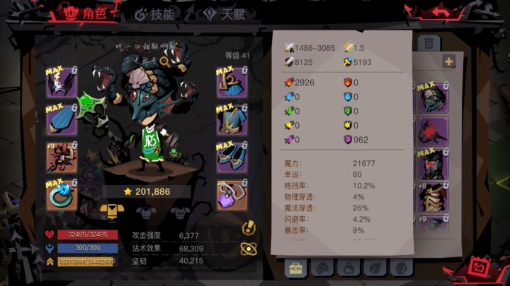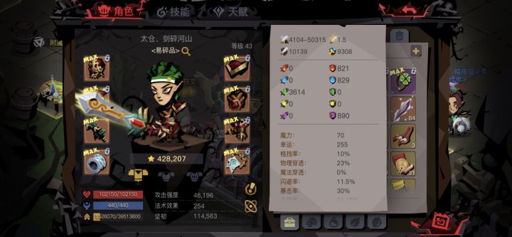首先我是这个面板,之前4w2最大打了一天实在是打不过,就转了俩7级最大的石头,然后复活两次过了巨魔,谈谈感受吧,我感觉大剑想过扭曲是真的还是不能有没用的词条,尤其是对于符文星痕天赋都一般的来说,利用好每个词条能让大剑更舒适的过扭曲,首先蓝量方面,能有个500左右的话(2个魔法值词条)4层8层9层应该是可以不用吃蓝打的,吸蓝套特别重要,我昨晚上打10层只给了我一个大蓝,要是没吸蓝套妥妥的过不去了,吸