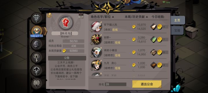 各位小伙伴好呀!肝级所需:月卡,料理,大量时间。(无月卡经验任务为三个,有月卡加一个,即四个)过了国王后就可以一直肝时光图一,攻击不够时就刷单人模式,若攻击到位就单人刷组队模式。(攻击到位理解:一刀一个小怪)前期可加入300+级工会科技的工会,攒贡献币点女神像的化石耳坠。上图可以看到俺所在的工会科技等级为436级上图为工会科技的女神像以及加大攻的耳坠上图为时光图一好像低等级都有这