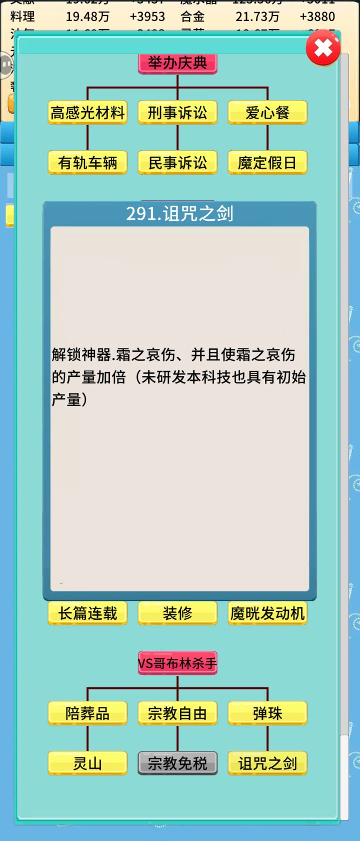 研发了以后新的神器我升了几级,后来重开一个周目,在我后来的周目研发这个科技之前这个神器在列表里都是没有的