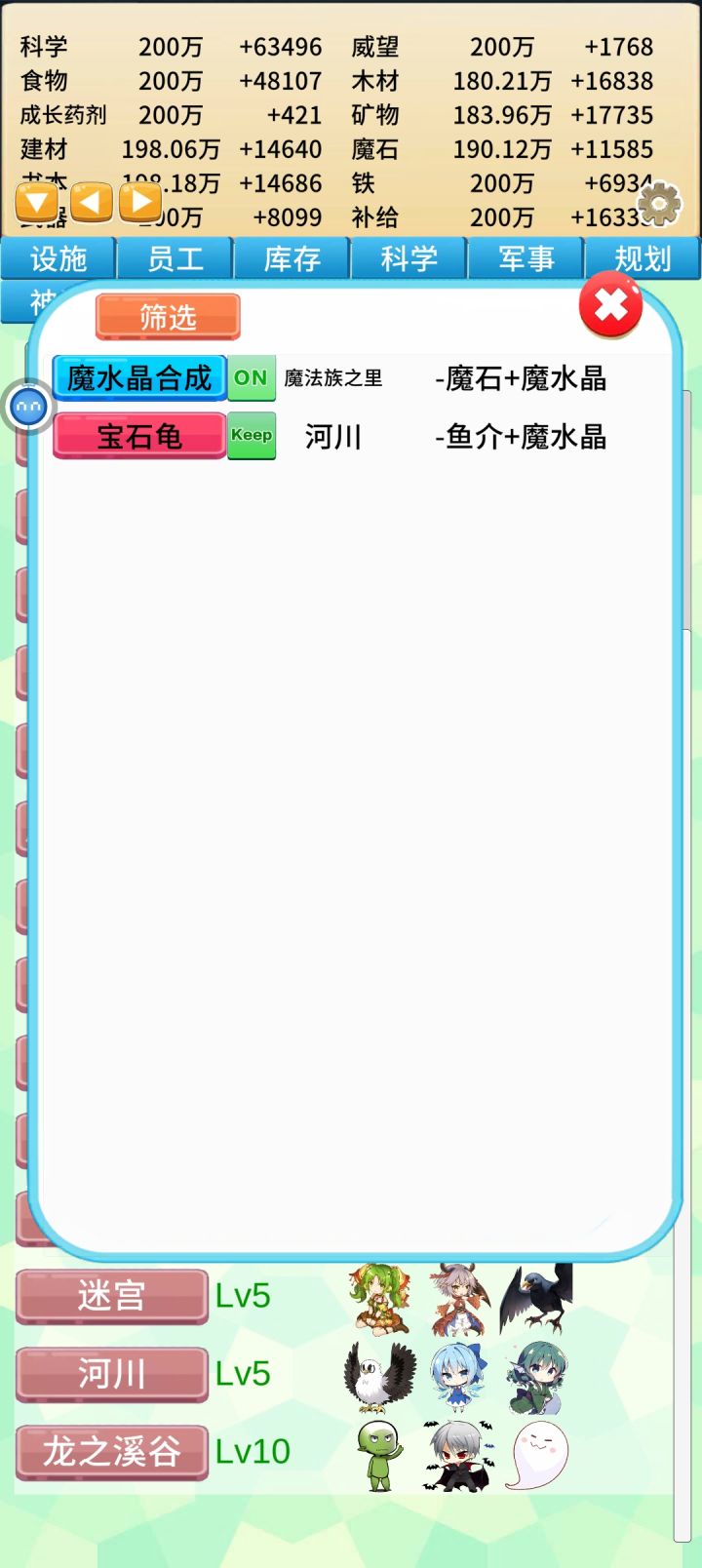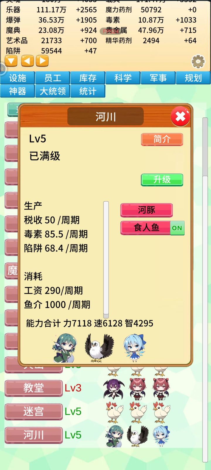我目前力合计就算7000吧,那基础产量也是1+5×7=36,我现在地下城的等级是7,那么附加产量为35,合计71,我上阵的三个员工都有渔夫效果,那么就是71×1.9=135,可现在这个产量都无加成的产量高
