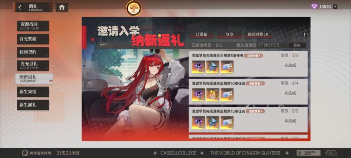 助力新人冲榜,限定兑换码邀请码,角色配队
