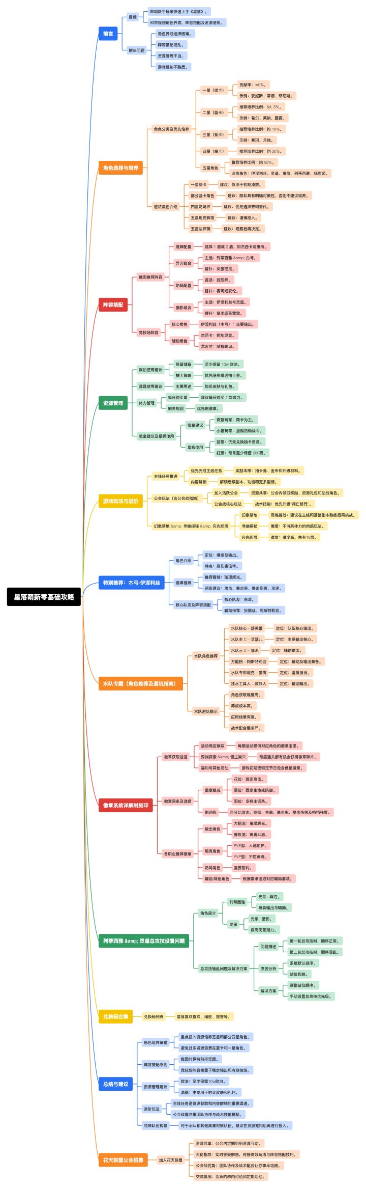 共10271字 预计阅读时间八分钟 #星落攻略 ——花天联盟攻略组2025.3.16公会QQ群:851935470目录1.前言2.角色选择与培养-2.1角色分类及优先培养-2.2避坑角色介绍3.阵容搭配-3.1推图推荐阵容-3.2竞技场阵容-3.3角色突破优先级4.资源管理-4.1欧泊使用建议-4.2源晶使用建议-4.3体力管理-4.4氪金建议及星辉使用5.游戏玩