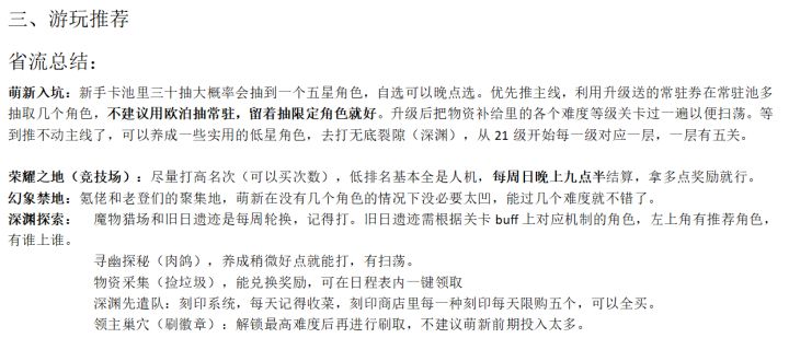 (推荐看图)一、新手推荐(无最新五星推荐版本) 更新于2025.5.7(1)由于第三天送白鸢,新手池的自选建议在可推图的情况下晚点选,个人推荐优先级(芙蕾雅>舒芙蕾>白鸢>辉夜)。优先培养角色等级>技能等级>徽章(2)不作梯度榜,以下为各角色使用方向推荐(2-4星,实用性较强的角色,大多数角色三命使用最佳):前期推图(萌新首选,任何环境下都能用上):杰西卡(随机石化)、鬼魅(直伤大C)、