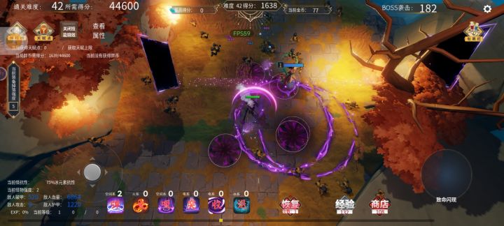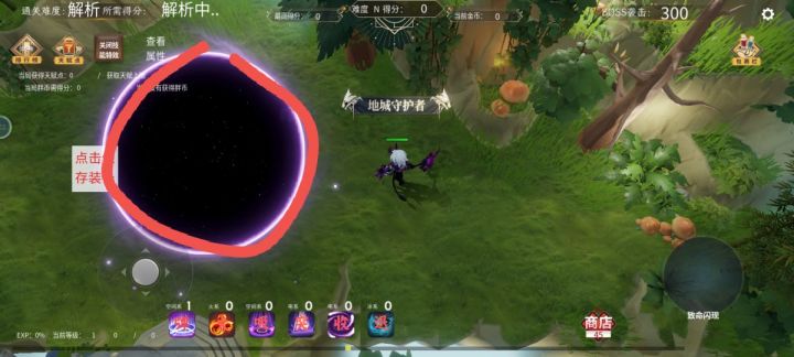升级感觉没什么伤害提升,所以没必要金币去升级。他会按时出现光圈去捡就可以升级了,商店旁边有个经验的到零后一直点他会出很多经验球,第二个boss几乎可以10多级。