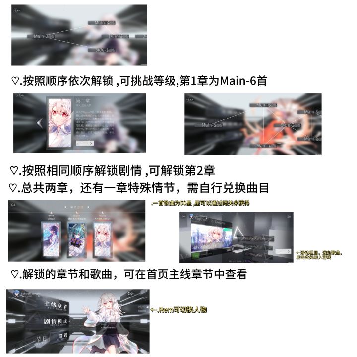 解密在官方群参与,在官方群发布提示和答案,怎么都不来群里玩啊TwT。第三章剧情解锁方式:在主界面点击用户名,输入Rem并确认,解锁路线1。在主界面点击用户名,输入Ram并确认,解锁路线2。区分大小写。