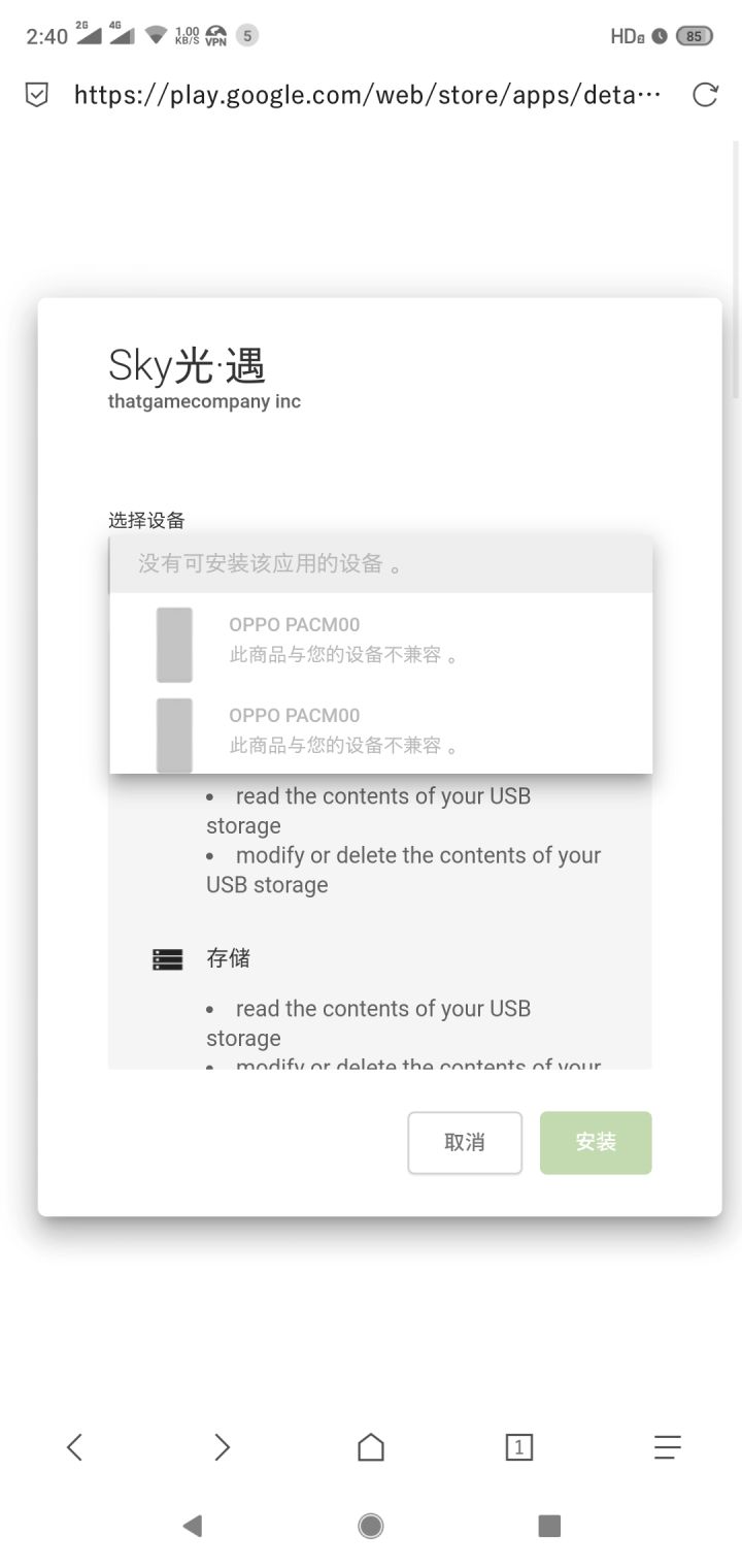 麻了 tizi换了好几个地区 什么新加坡日本美国英国都试了 都搜不到光遇 然后就在浏览器搜 说不兼容 想问下大家用OPPOr15的是不是也不兼容呀