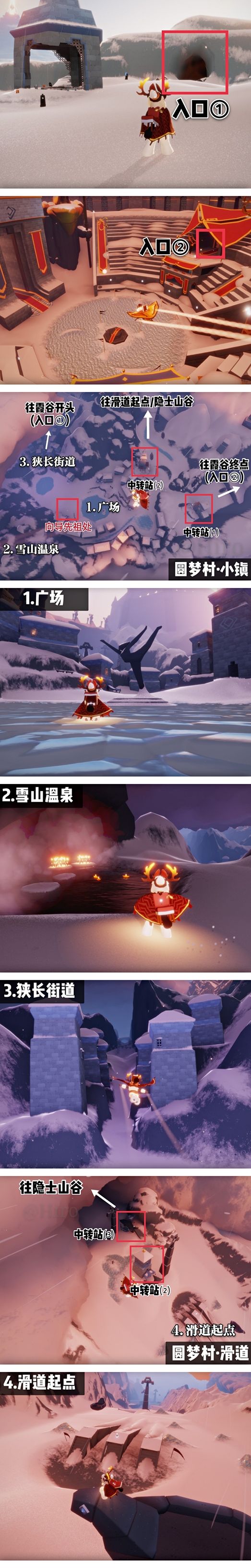 前排提示:1.目前全部攻略已更完,若有调整再更新。2.建议先看地图概览,后续命名基于此。3.如有错误/建议欢迎指出。——————1.24*对入口⑵与任务地点进行更新,霞谷终点新增看台装饰、垂直移动机关、小堆蜡烛等。导航:地图概览→先祖位置→光人位置→缆车与中转站→一.地图概览本次新季有两张大地图:圆梦村与隐士山谷,同时有两个入口可进到新图,分别位于霞谷的开头与任意比赛终点,均通往圆