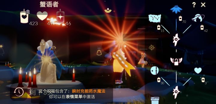 法式帽 42蜡烛,蓝花斗篷 70蜡烛,面具 30蜡烛,避🦐水管 30蜡烛,乐谱 15蜡烛