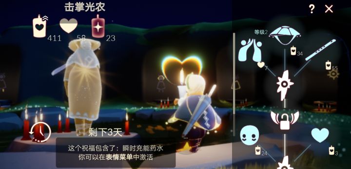 囤囤鼠囤了400+蜡烛积灰,终于能用了ξ( ✿>◡❛)返场的是小灯泡配套用头,小灯泡斗笠+笛子,不能防雨,估计是漏水的🌚🌚小灯泡斗笠 34蜡烛,笛子 55蜡烛,面具 24蜡烛,都非常便宜,冲就完了,二级击掌一般般叭返场先祖在:云野的浮空岛,就是1图右边进去那个图,第一个台子的柱子的斜后方,看图都标了需要一直举火到最顶,萌新乖乖跳就是了,大佬随意srds斗笠有头发……看着还是秃秃秃秃秃秃秃