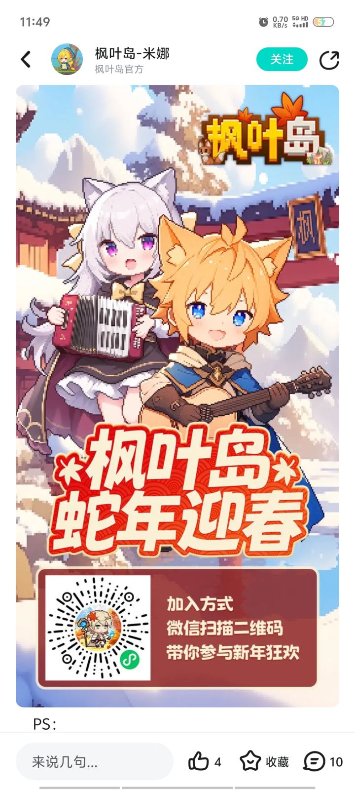 枫叶岛 周年祝福!枫叶岛已经陪伴大家一周年啦,从23年12月6号号正式公测到现在,回想起刚刚上线的时候无数的冒险者勇闯礁石镇的场景实在是令人流连忘返,但快乐的时光总是过得很快,所以我们需要珍惜眼前美好的相遇,也感谢各位冒险岛民的支持与陪伴,和我一起献上您的美好祝福吧!【活动规则】:活动期间在评论区留下超过15个字对《枫叶岛》的周年祝福参与活动,带上区服和角色名。即可参加活动,【举个例子】区