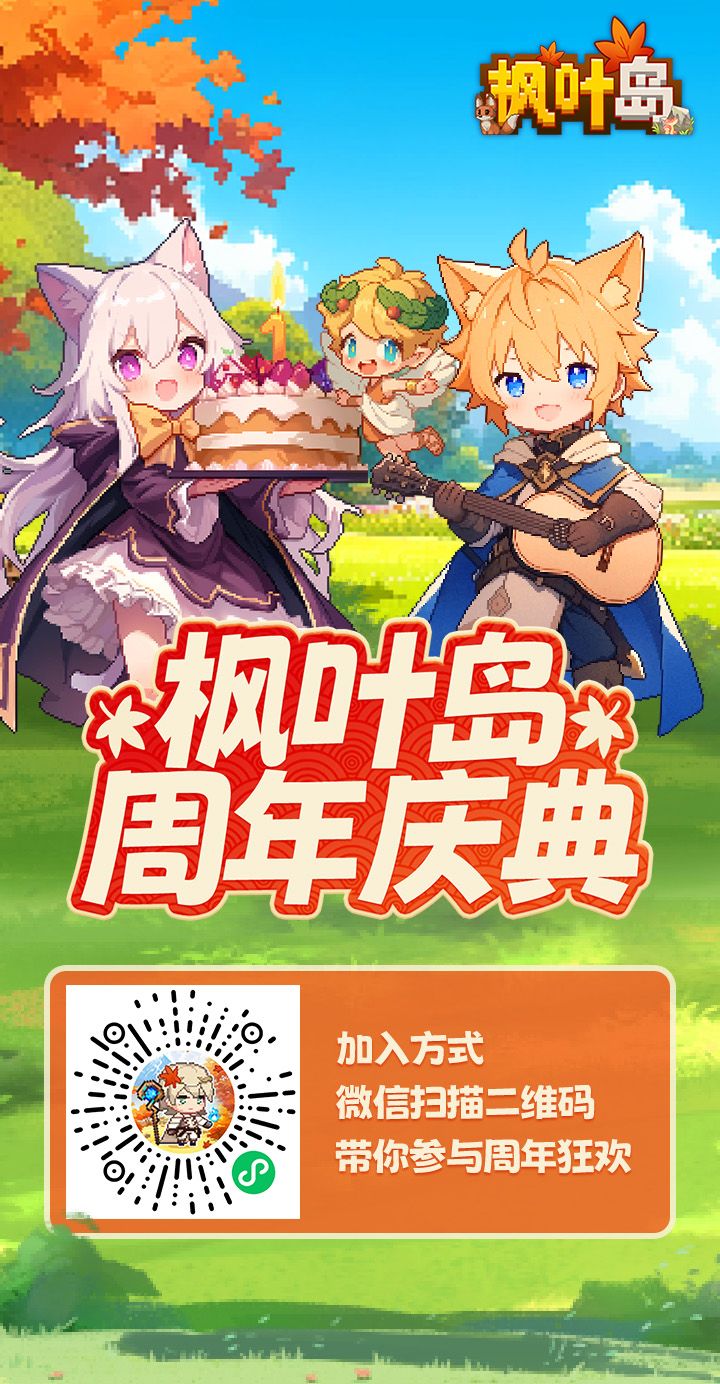 回首往昔,一年前的枫叶岛,宛如一颗怀揣梦想的种子,悄然落地生根。那时的它,或许还带着些许青涩与稚嫩,但却有着无尽的潜力与希望。在阳光雨露的润泽下,在各位冒险家的悉心呵护与陪伴中,它如同一个朝气蓬勃的少年,一路茁壮成长,近期即将迎来枫叶岛的一周岁,感谢大家的一直以来的陪伴与支持,接下来一起狂欢活动吧!活动时间:2024年12月1日——2024年12月15日活动时间:2024年12月1日——202
