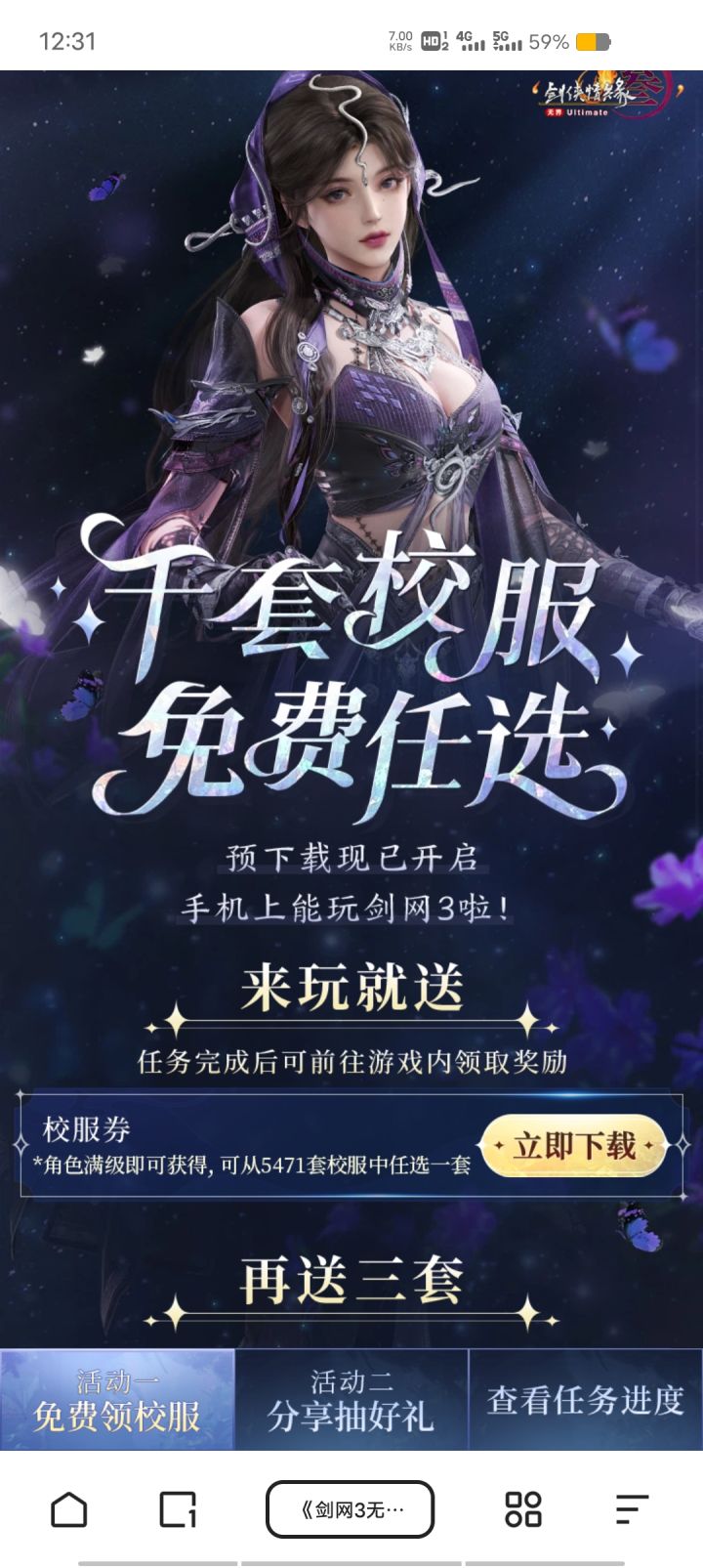 手机上可以玩剑网3啦!现在参与免费领校服活动,千套校服免费任选!还有概率获得iPhone 15 Pro,京东卡等惊喜好礼。https://s.xoyo.com/rapqPr#/guest?share_token=MTgwMTU3NzgyNzgmMGFmMWM3ZmQzYjJlOTAzNmM5M2Y4ZjM1MDZjYTZhMTE%3D