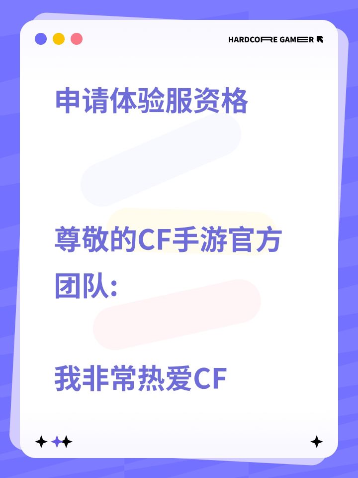 尊敬的《穿越火线:枪战王者》运营团队: 你们好! 我是一名痴迷于《穿越火线:枪战王者》的忠实玩家。自下载以来,我就被它紧张刺激的对战、丰富多元的玩法深深吸引一直以来,我都密切关注着游戏的各种动态,从新武器的推出到新地图的上线,每一次更新都让我兴奋不已。我深知体验服对于游戏发展的重要性,它是新功能和新玩法的试验田,能够让玩家提前体验并反馈问题,从而使正式服更加完善。 我申请体验服资格,是希望能