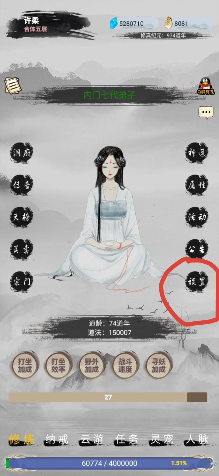 全民修真时代攻略进入游戏后,从四个人物形象里选择一个,创好角色名,便可以开始属于你的修仙之旅啦。游戏的境界分为:凡人境,练气境,筑基境,金丹境,元婴境,出窍境,分神境,合体境,大乘境,渡劫境等等每个境界又分为1,2,3,4,5,6,7,8,9 和圆满游戏的装备品质,宠物品质,法宝品质分为:白,绿,蓝,紫,黄,红游戏的主要货币为:灵石:可以通过刷图,洞府挖矿,装备分解,佣兵,锁妖塔,每日签到,每日福