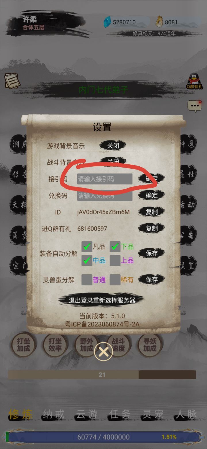 设置-接引码兑换200仙玉