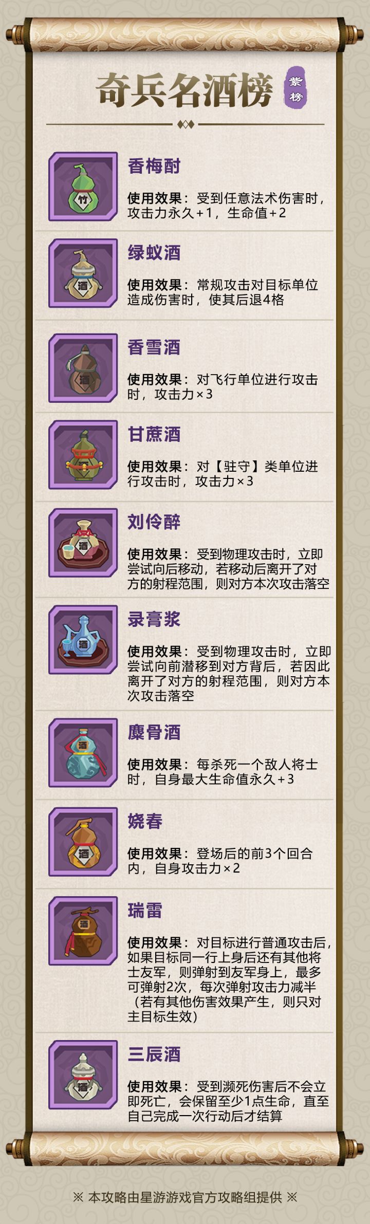 【奇兵名酒榜】紫榜最后一期!无忧召唤,逍遥回血!快来看看榜单上都有哪些佳酿吧!