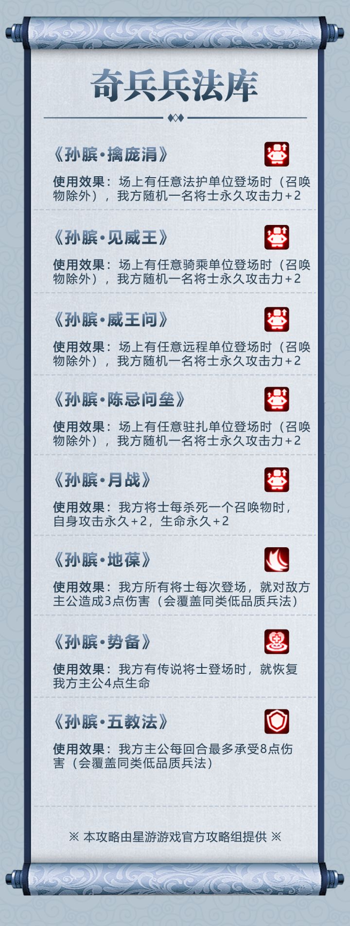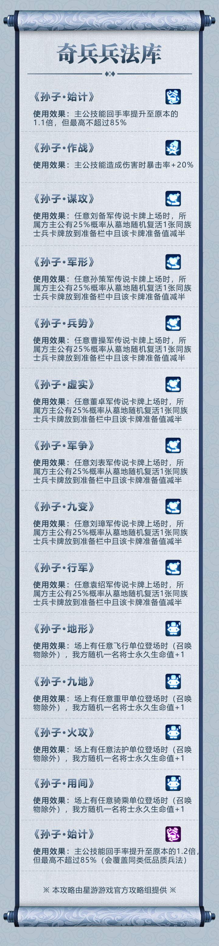 今日【奇兵兵法库】来介绍【孙子】兵法哦,【孙子】兵法能从墓地复活同族士兵呢!快来看看吧!