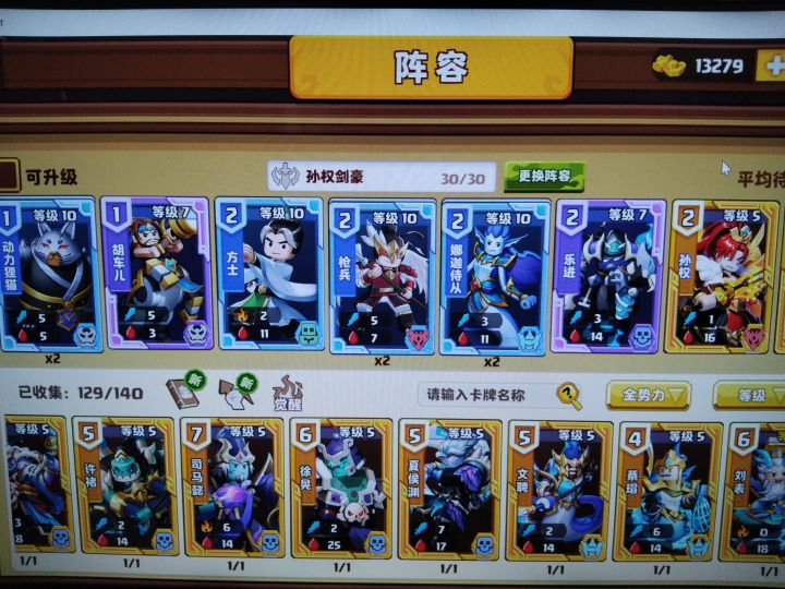 核心卡牌:周瑜(3级以上),孙策,孙权(1级以上,可代替为2级以上蔡瑁),乐进,候成(4级以上),甘宁,太史慈(可替换为李儒),连诛。免责声明:此阵容仅供参考!各位主公可根据自身情况进行修改。