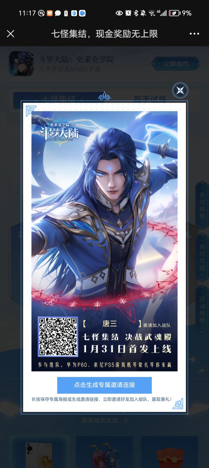 1月31日斗罗大世界冒险开启,诚邀您参与组队,一起瓜分百万大奖:https://hd.tanwan.com/huodong/dldl/2024qgjj/?invite_code=927098117
