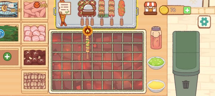 订单上不会显示加什么料 全靠记 而且烤多了 这个菜单还老是跑出来我都没办法把烤串放盘里, 位置安排的太紧凑 ,装修啊 餐铃位置不好点,上菜老点到,希望能安排的合理点,还有就是没玩多长时间就崩了#我的2023游戏年度报告