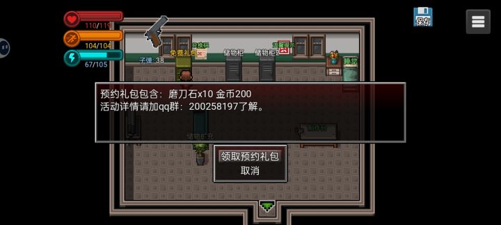 前期捡到的酒精做了急救包凑够15个可以在一楼医生那免费治疗超方便剩余的酒精和草药做解毒剂,草药种子种了一天一收,西红柿青瓜土豆胡萝卜种子天天种两天一收,在野外打熊得熊肝找丽娜做加血的菜,野外摸鱼或者公园钓鱼有鳊鱼草鱼也能加血的菜,没有熊肝菜加的多,攒的垃圾和发夹卖了在公园售货机买运动饮料打BOSS好用。磨刀石除了领福利还可以打野猪皮8个兑一块磨刀石搭配金属废料升级攻击力,每次加5点攻击力。