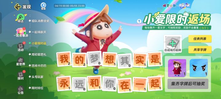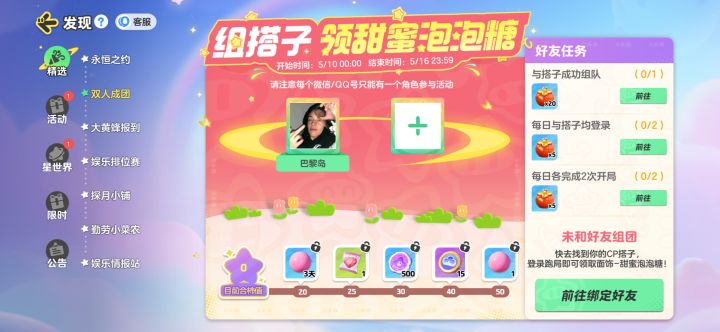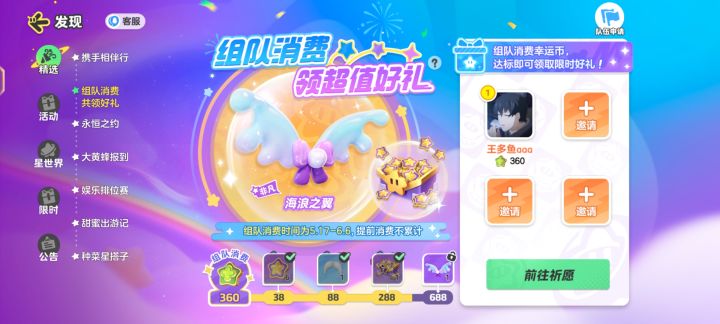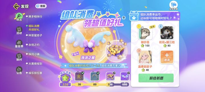 消费活动找队友,还缺一人,贡献60额度就行,代码28Y9xA5G带上证明你消费能力的截图能增大通过几率白嫖哒咩#元梦之星