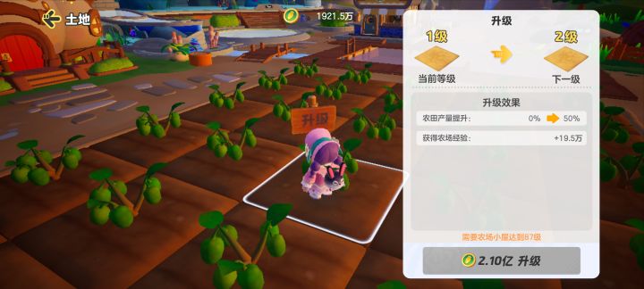 农田需要空闲时才能升级牧场随时可以升级所以可以升级后农田要等待收获完成后再升级如果马上要升级,可以等等再种菜牧场随时可以升级可以升级后,卡在动物收获之前,先升级哟,可以增产#元梦之星 #元梦之星农场小屋 #元梦之星星宝农场