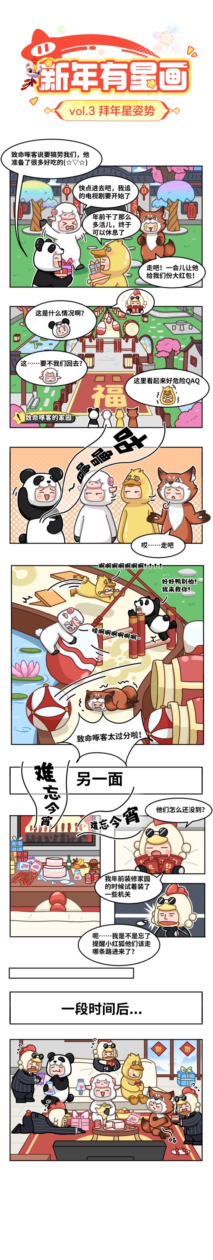春联总算贴完了!忙了这么久,致命啄客准备了很多好吃的犒劳大家,不过他似乎忘了什么……