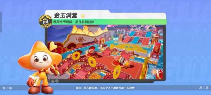 岁末将至,喜迎新春,在这个辞旧迎新的时刻,怎能少了一份新年的元素呢!最近更新的竟速地图【金玉满堂】,便是一个充满浓浓年味的地图。那喜庆的红地毯从头铺到尾,金灿灿的金币点缀其间,璀璨的烟花在空中绽放,让人仿佛置身于一个欢乐祥和的新年盛宴中。话不多说,速随星妹一同踏上【金玉满堂】的旅程,感受那份独特的年味气息吧! 游戏开始后,首先迎接我们的是小桥流水,3座小桥中央各放置了一枚大金币,星宝们可以从