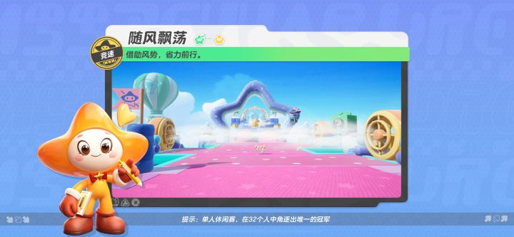 星宝们有想象过飞上天空随风飘荡是什么体验吗?当强风袭来,在变幻的风向与机关障碍物的阻挠下,星宝们又该如何通关呢?今天星妹给大家带来的地图【随风飘荡】就是这样一张充满了极限与挑战的竞速图。风力强劲的鼓风机会出现在地图的各个关键位置,星宝们要在规定时间内,借助风势快速通过数道关卡才可以获得胜利哦~接下来就和星妹一起看看如何御风前行叭! 这张地图一共有六个小关卡,强风阵阵,其中竞速的重点便是如何
