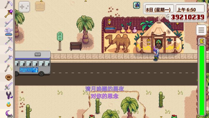 先要解锁公交车,再准备200个黑色的精华,好像是虚空精华,在开公共汽车到沙漠,然后再到下图的商铺买,要星期五来买东西东西如下图在来到下水道,要解释下水道就要去收集博物馆物品,差不多是60个物品要10星才能送,在送给小黑,因为我结婚了还是咋了就送不了,然后他三天后的房间还会出现在和配偶房间一样的位置,但是他不会睡在你床上,房间跟小黑的下水道房间很像,送了之后会变九星,所以你要给他送礼物