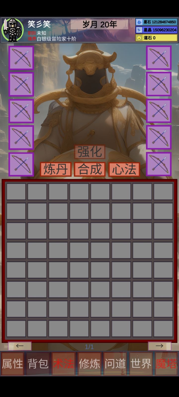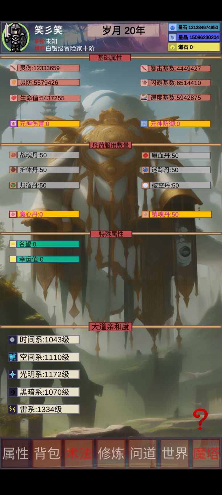 游戏挂机摸鱼,别急前期挂挂机到青铜1就能神游了,游戏的核心就是提升角色界面的各种属性,提升属性的方法有很多,方法如下: 1.做装备,这是最快的提升方式(没有之一),装备可以佩戴多个同样的哈。 2.做丹药,丹药也分很多种目前1/2/3级丹药(每种每级听说是50个就上限了哟) 3.修炼突破。 4.提升问道等级(0-1不会有属性的提升,之后就有了,提升什么属性提升多少都会有提示的) 以上就是本
