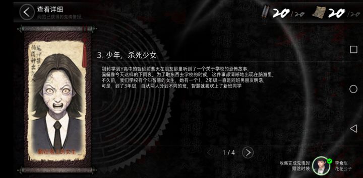 大家好!我来提供一下这个鬼魂的收集攻略。可能有很多人去网上搜这个鬼魂的搜集方法,但是网上那些大部分都是关于PC端的,有的人可能就被误导了,这个,PC端的搜集方法是先去主楼二的一楼休息室,再去新楼的二楼的三年三班,然后去楼上的四年九班。手机端和PC端不一样!手机端的第一个刷新点是新楼二楼的三年三班,然后第二个刷新点好像是随机的其他教室(其实我忘了),第三次再去四年九班就能收集到啦!(๑✧∀✧๑)☀这
