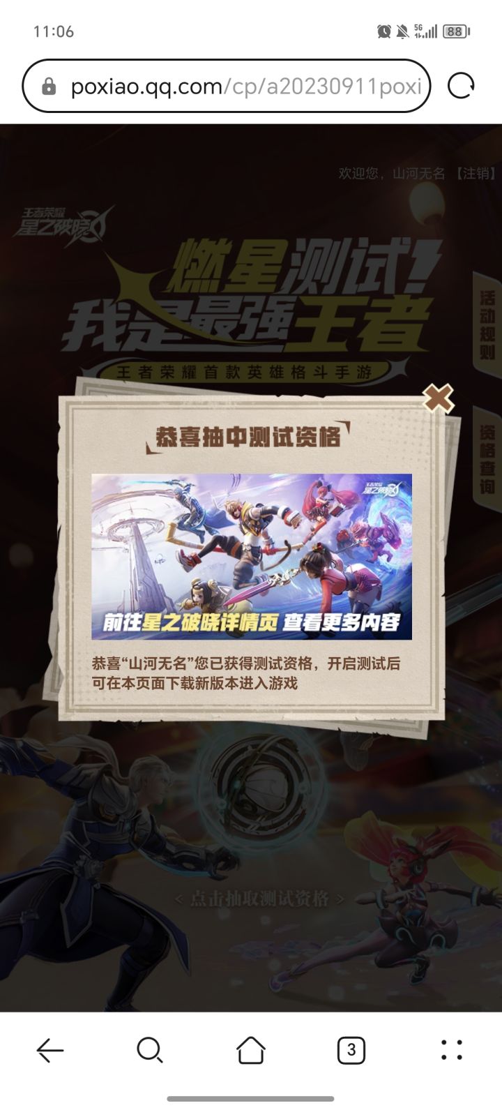 这啥意思啊?他说我有测试资格了但进不去啊#游戏资讯#新手攻略#有奖活动