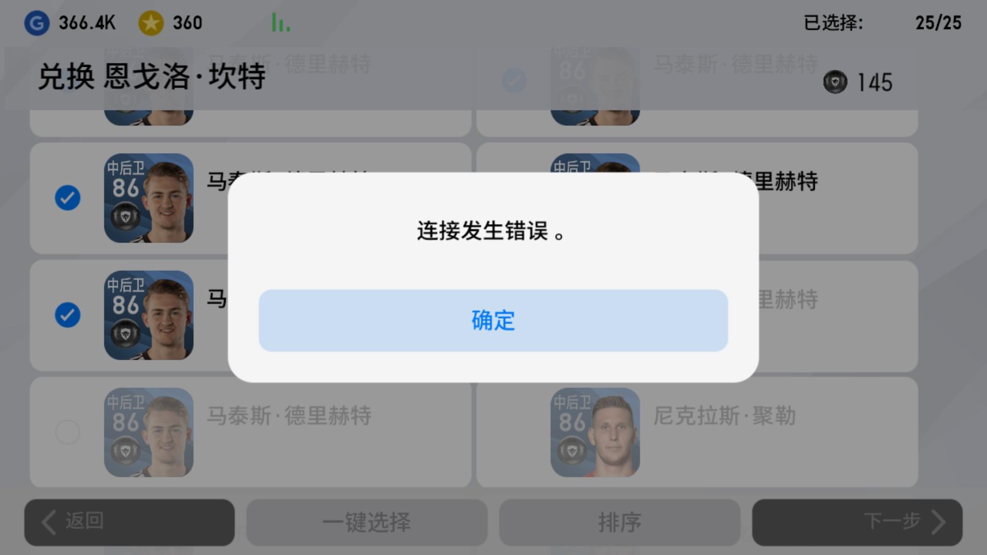 我兑换精选黑球坎特的时候会显示“连接错误”,然后兑换失败,请问怎么办