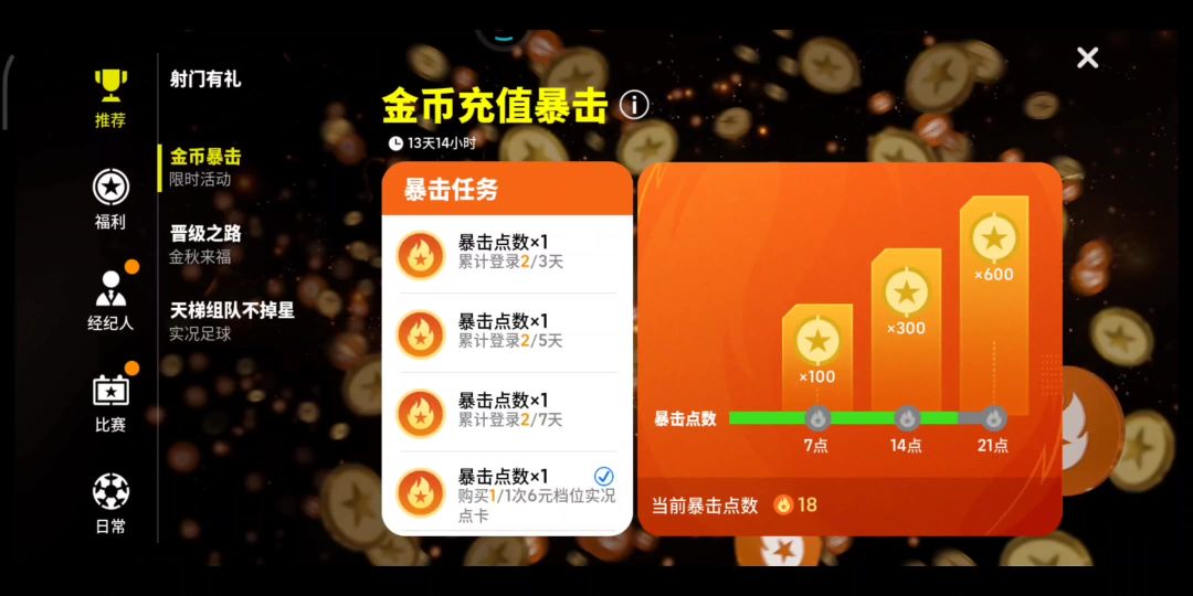 【活动攻略】最划算的氪金活动?1221教你金币暴击玩法小窍门! 6元换600金币➕100点卡,做的任务又不是太麻烦,和天梯升星的任务有重合!简直不要太好!#宝藏游戏安利派对#实况足球手游#实况足球双节同庆#实况足球五周年#实况足球攻略#1221卡包活动简析