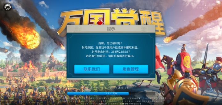 玩了十几个小时,加入了联盟,认识了些朋友,今天玩得正嗨的时候,突然给我封了,什么鬼。18服,ID:万象之王