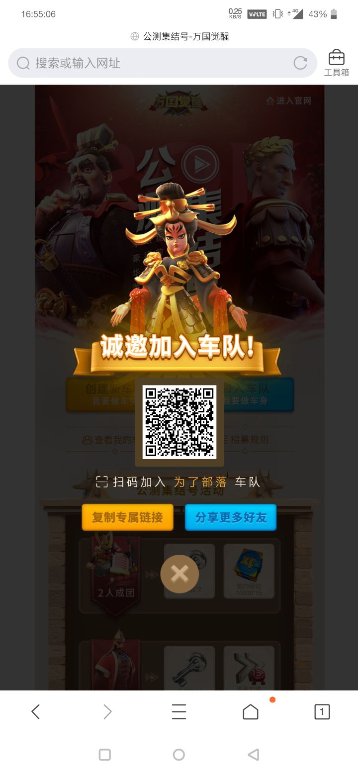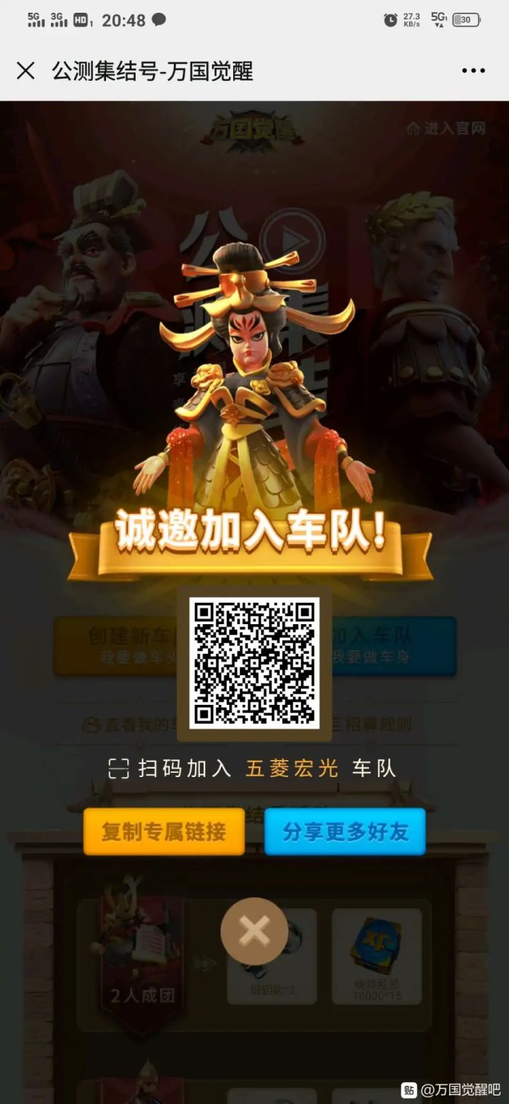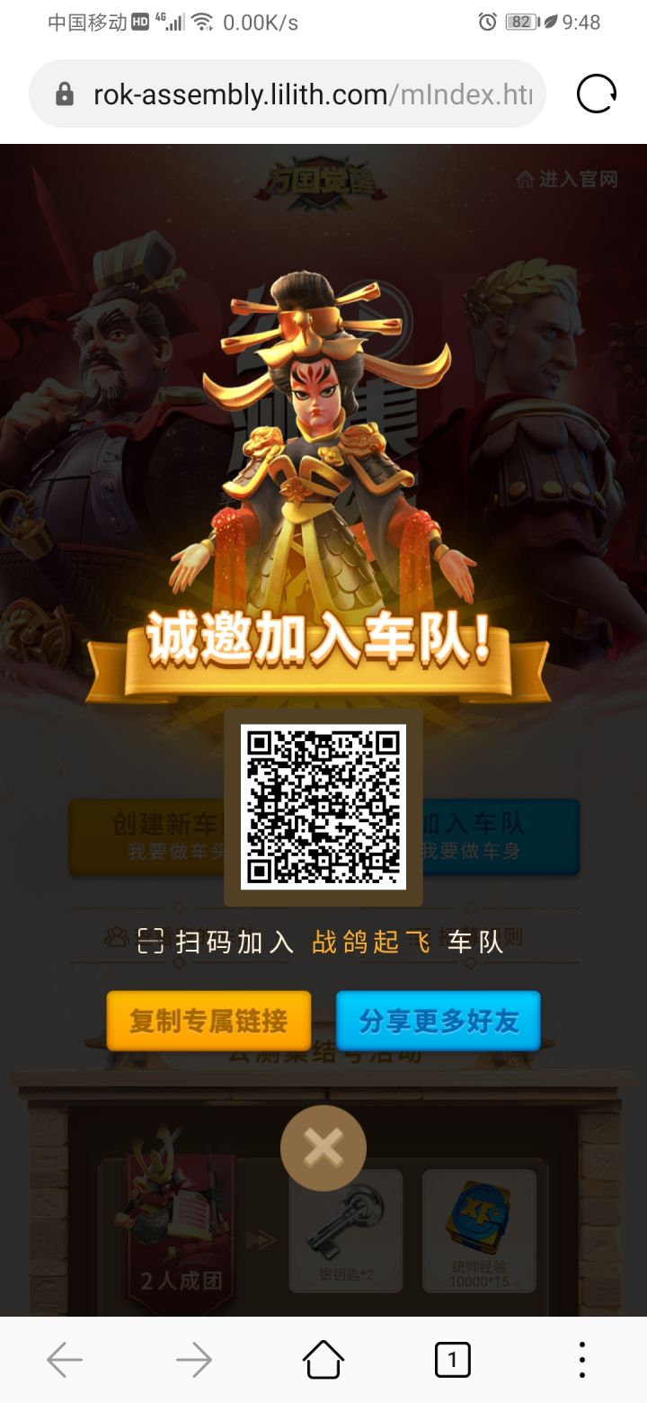 满8人即可领全奖励。复制网页长摁图中二维码皆可。预祝欧气满满,转盘顺利,科技发达,加速多多,扫田无忧。http://rok-assembly.lilith.com/index.html?code=32451b812111a2aefcebad31bac4fb26