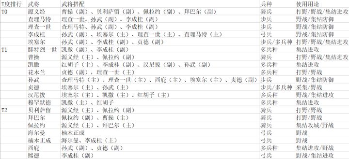 目前武将排行榜。带你走出萌新路。
