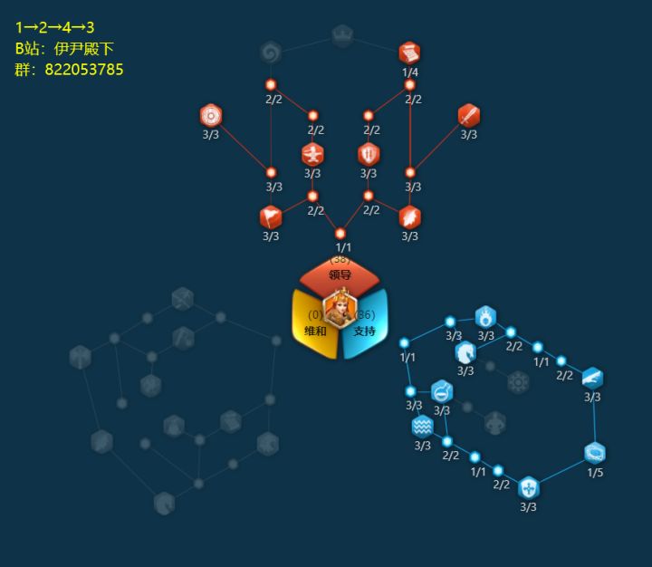 全武将技能专精顺序和天赋图!数字为技能顺序,例如1→2→3→4就是先升满1技能,再升星再升满2技能,以此类推。图上面的中文翻译为bug不必在意,天赋和游戏内天赋图的位置是对应的,可以放心!群内相册可以随时查看!仅供参考!制作不易!