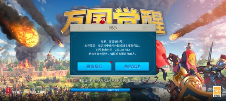 已经玩了五天,天天在线时长8小时以上,昨天天氪了曹操,今天早上凌晨还可以玩,一觉醒号被封了,客服也跟挂了一样不理不睬,说什么脚本外挂,纯手打看都不看一眼就封?后天数据怎么分析的?手机新买的什么插件、app都没有呢哪来的外挂,手打时间长就是脚本是吧?要这样你那个过个半小时就出的验证存在的意义是什么?这隔了十几天最近无聊又下回来了又被封了,这游戏真的是奇葩,时长是他们判断脚本外挂的依据,肝帝们都不要