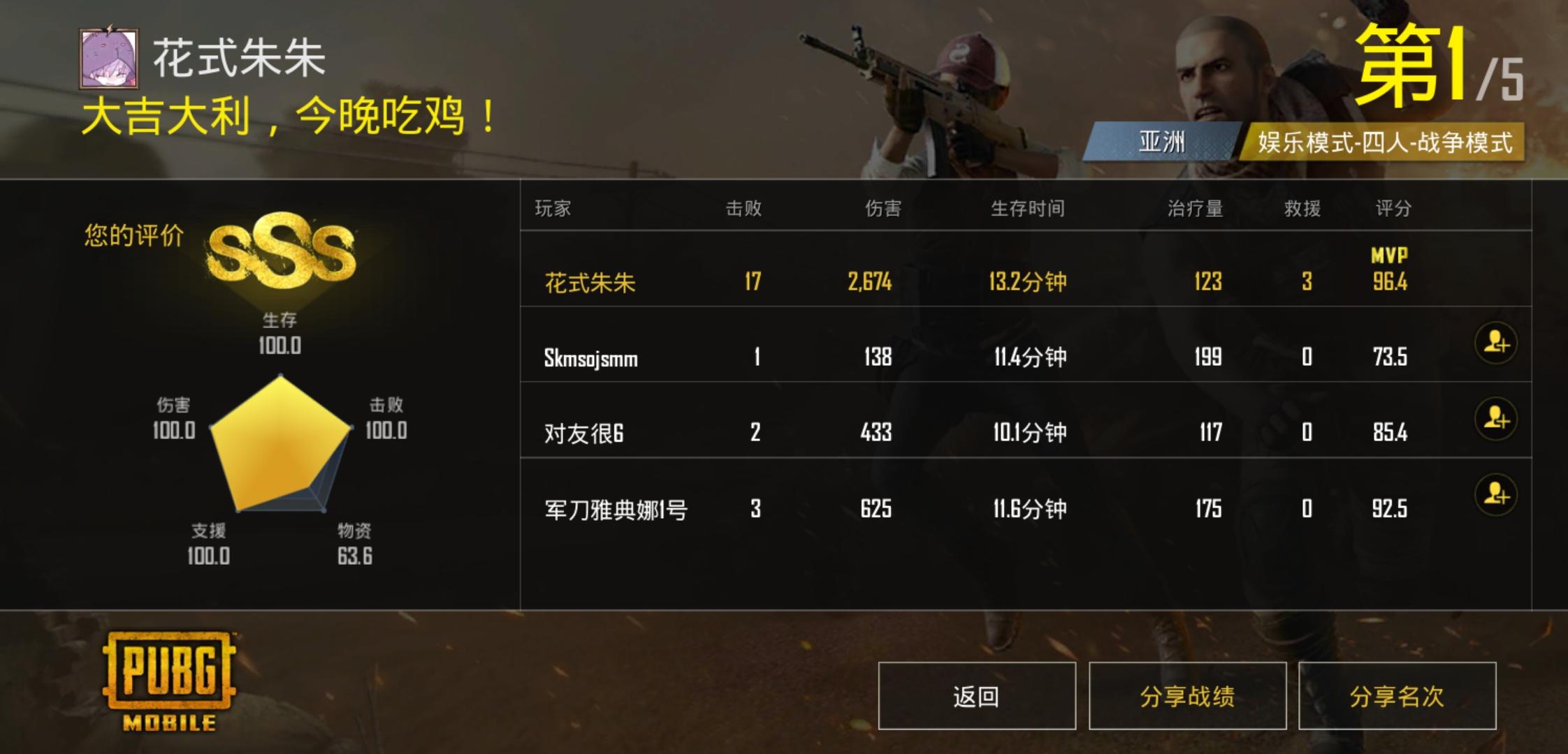 内个第三个人(对友很6)的那个应该是小学生,现在的小学生都缺少管教吗?局内对话没有截上图,但是就是因为我没有拉他。就开始骂我(当时和敌人对狙中,因为高点AWM已经瞄准他的眉心了)然后他成盒了,开始骂我辣鸡,逼得我实力证明,最后他中场退出(可能脸上挂不住了吧)。
